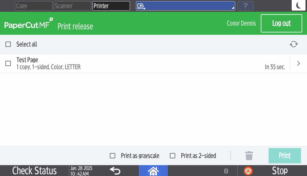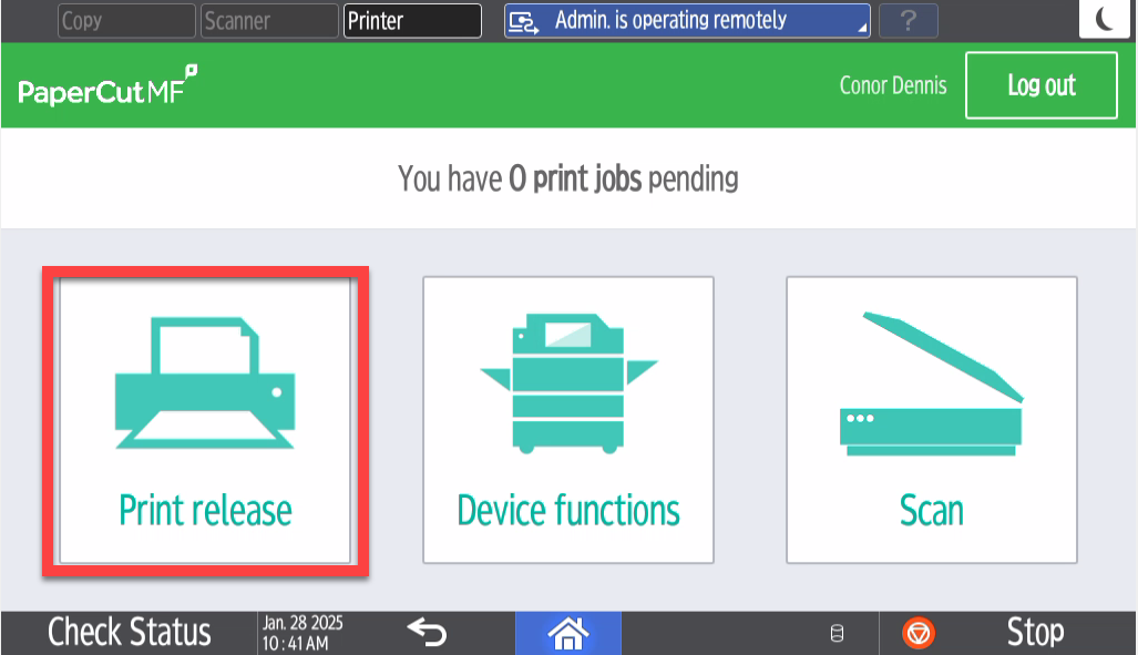 - Once the print is sent, press the "Print Release" button on the printer.